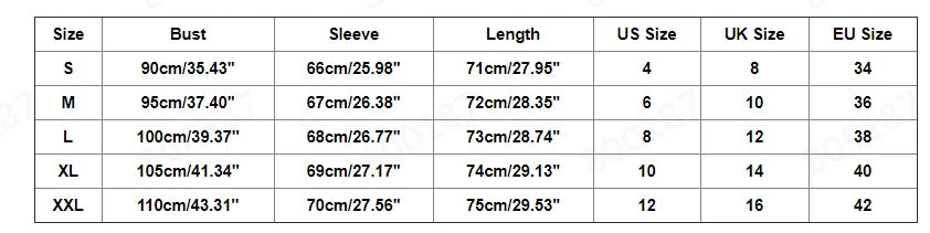 (Garment length measurement. Please allow 1–3 cm variation.)